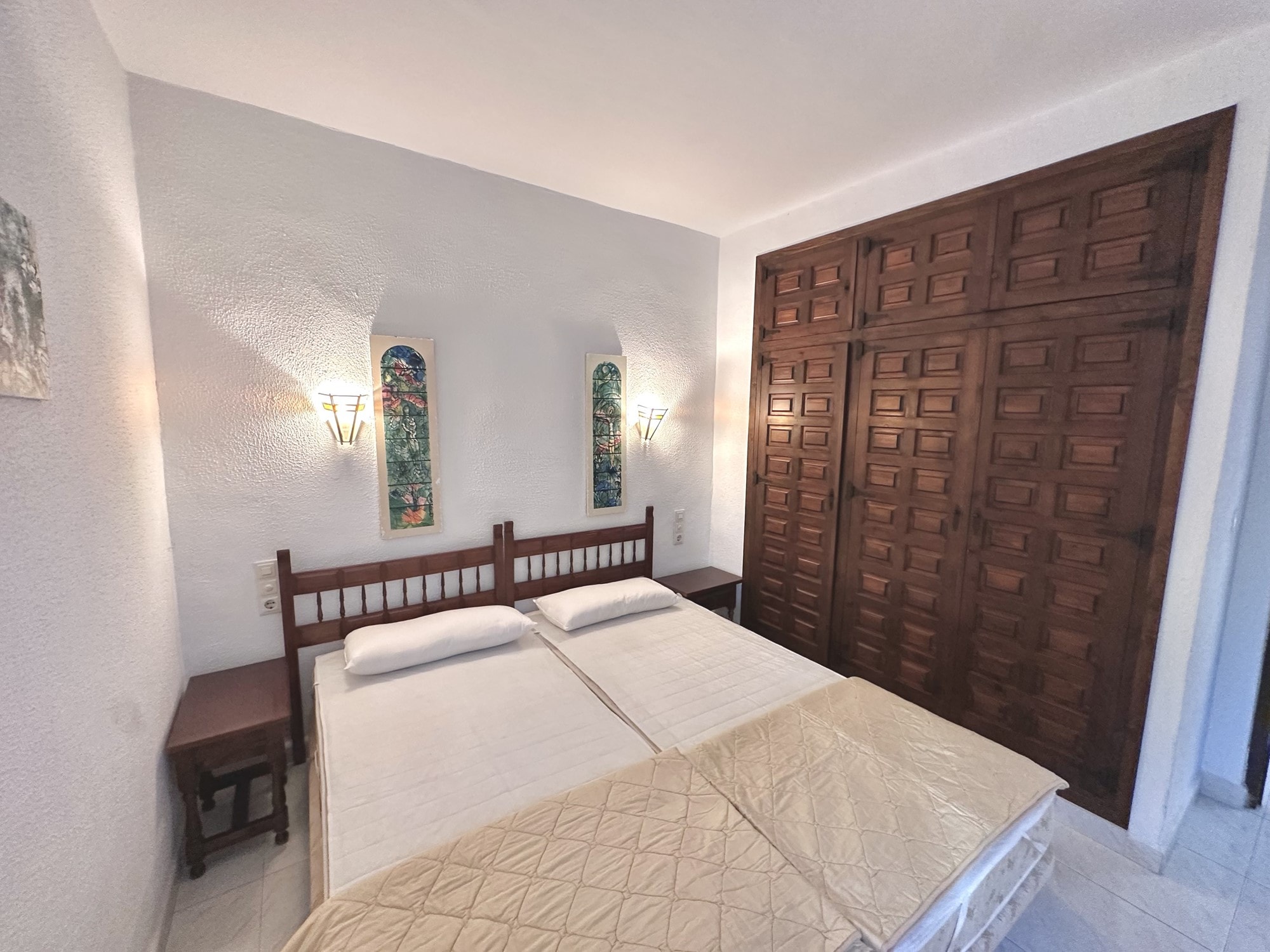 Fantastic detached villa in Els Poblets, nearby the center of the village! This villa with nice panoramic views is located in a quiet area nerby the center and is built on 1 level. Just perfect for permanent living. Very comfortable living space of around 90 m2 offers rooms with an absolute feel-good atmosphere. The villa is divided into a spacious living and dining room, an open plan kitchen, 2 bedrooms, 1 bathroom and a covered terrace with views to the garden. The Mediterranean garden is wonderful with grass, Mediterranean plants and palm trees. It has a large area for sunbathing all year round and also a community pool nearby. You can easily park your vehicle in the parking place. A private and sunny property, an absolute oasis of well-being! Features: Ceramic tiled floors, wooden windows with single glazing, aluminium shutters, fitted wardrobes, 1 unit air conditioning hot/ cold, wood cheminey, parking for 1 cars and much more. Location: tranquil location just a few minutes walk to the village center and about 1 km to the beach of Els Poblets. This village offers an excellent infrastructure with everything you need for everyday life. To Denia are only 8 km with wonderful promenades, boutiques, as well as a multitude of restaurants will also make your stay an experience. The range of cultural, leisure and sports activities is extensive and has something to offer for all age groups. There are direct ferry connections to Mallorca and Ibiza, definitely worth a visit. Alicante and Valencia, both major cities with their own airport, can be reached in about an hour's drive on the motorway. Visit: by appointment. A property in a sought-after area, absolutly quite, with potential for homeowners and investors.